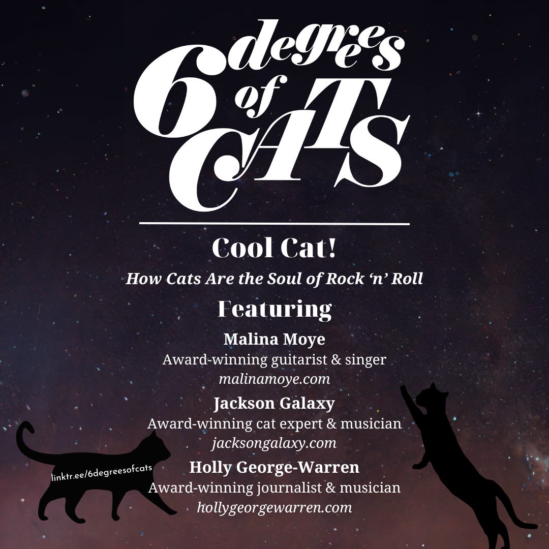 Weâll be joined by not one, not two, but THREE award-winning rock stars! âMy Cat From Hellâ star, musician and international cat advocate Jackson Galaxy shares how cats purr-fectly fit into his rock ânâ roll persona - and still do! Leading R&B musician and guitarist Malina Moye explains how cats have informed and inspired her artistry, and acclaimed music journalist and former Das FĂŒrlines guitarist Holly George-Warren provides historic and cultural insights as to how, and why, cats are the rock stars of the animal kingdom.